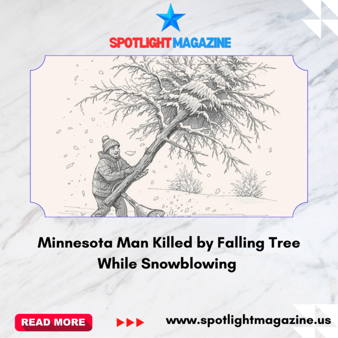 A 69-year-old man tragically died Wednesday morning in northeastern Minnesota after being crushed by a large tree while snowblowing near his home. The incident occurred around 10:22 a.m. at a residence off Laine Road in Alden Township, about 12 miles northwest of Two Harbors.