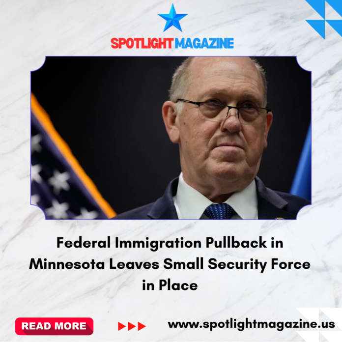 The federal government is pulling back most of its immigration enforcement officers from the Minneapolis-Saint Paul area in Minnesota, but a small federal security force will stay behind for a while. This decision came after months of controversial actions by immigration agents, widespread community protests and national debate over how the operation was handled.