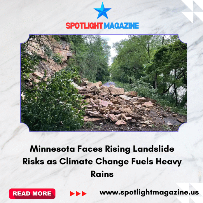Heavier rainfall fueled by a warming climate is accelerating erosion across Minnesota, leading to more frequent landslides, mudslides, and rockfalls. These events damage homes, businesses, and roads, and at times, have turned deadly. The sandstone bluffs and hillsides of the Minnesota River Valley are especially at risk.