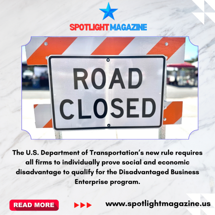 Under the new rule, all firms — including those already certified — must individually prove both social and economic disadvantage, regardless of race or sex, to requalify as a DBE.